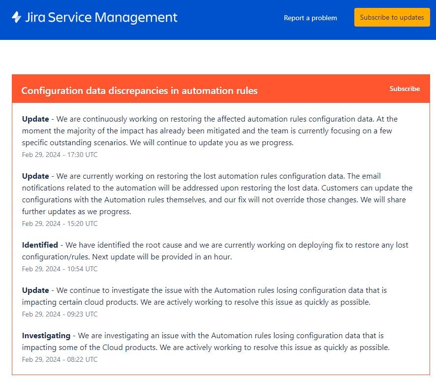 - Inform them of the outage and of the latest updates from Atlassian