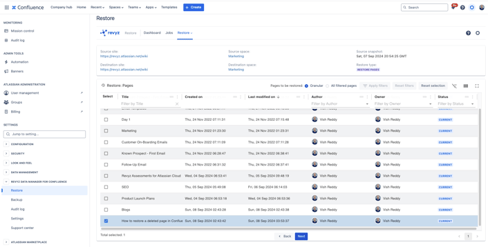 Swift Restoration: Quickly recovers accidentally deleted data, regardless of Confluence's native restoration capabilities.