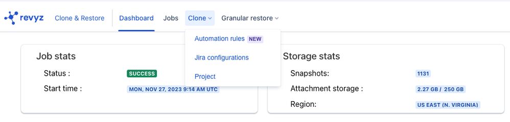 Given the significance of Jira Automation, today we are introducing support for backup of Jira Automation rules. If you are a customer of the Revyz Data Manager or Revyz Configuration Manager, this feature is available to you at no additional cost. To start using this feature go to the “Settings” page under the Revyz App and turn on “Automations backup” by adding in an API token from a service account and enabling Automation backup